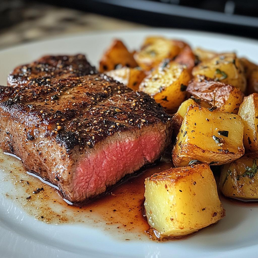 Een pittig en smaakvol Cajun boterbiefstuk met aardappelen, perfect voor een stevige maaltijd.