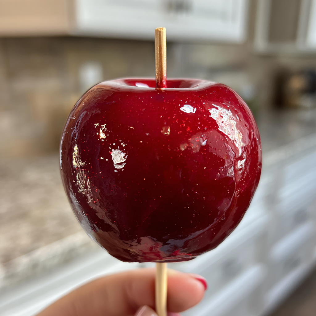 - Appelsoort is belangrijk: Granny Smith geeft een zuurzoet contrast dat de suikercoating doorsnijdt. Fuji en Honeycrisp zijn zoeter en even stevig. Vermijd zachte soorten zoals McIntosh of Red Delicious — ze worden papperig onder de hete suiker.