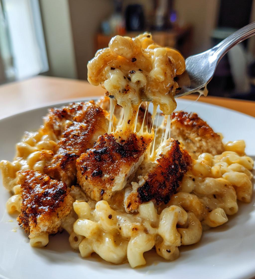 Een smaakvol gerecht met honing-peper kip en romige mac en kaas.