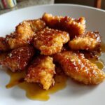 Een smakelijk gerecht met krokante oranje kip, perfect voor een maaltijd vol smaak.