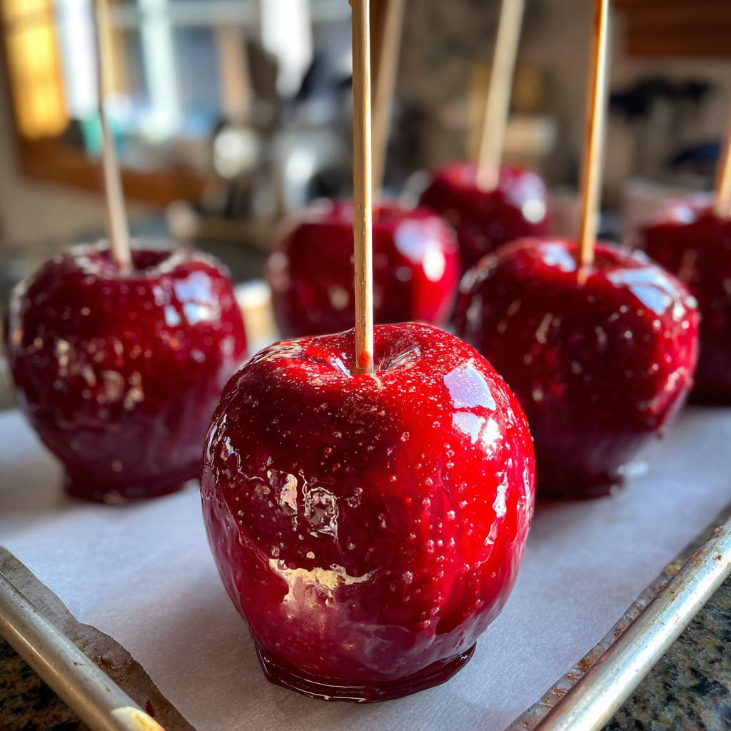 - Karamelappels: Vervang de rode glazuur door karamel voor een rijke, boterachtige smaak.